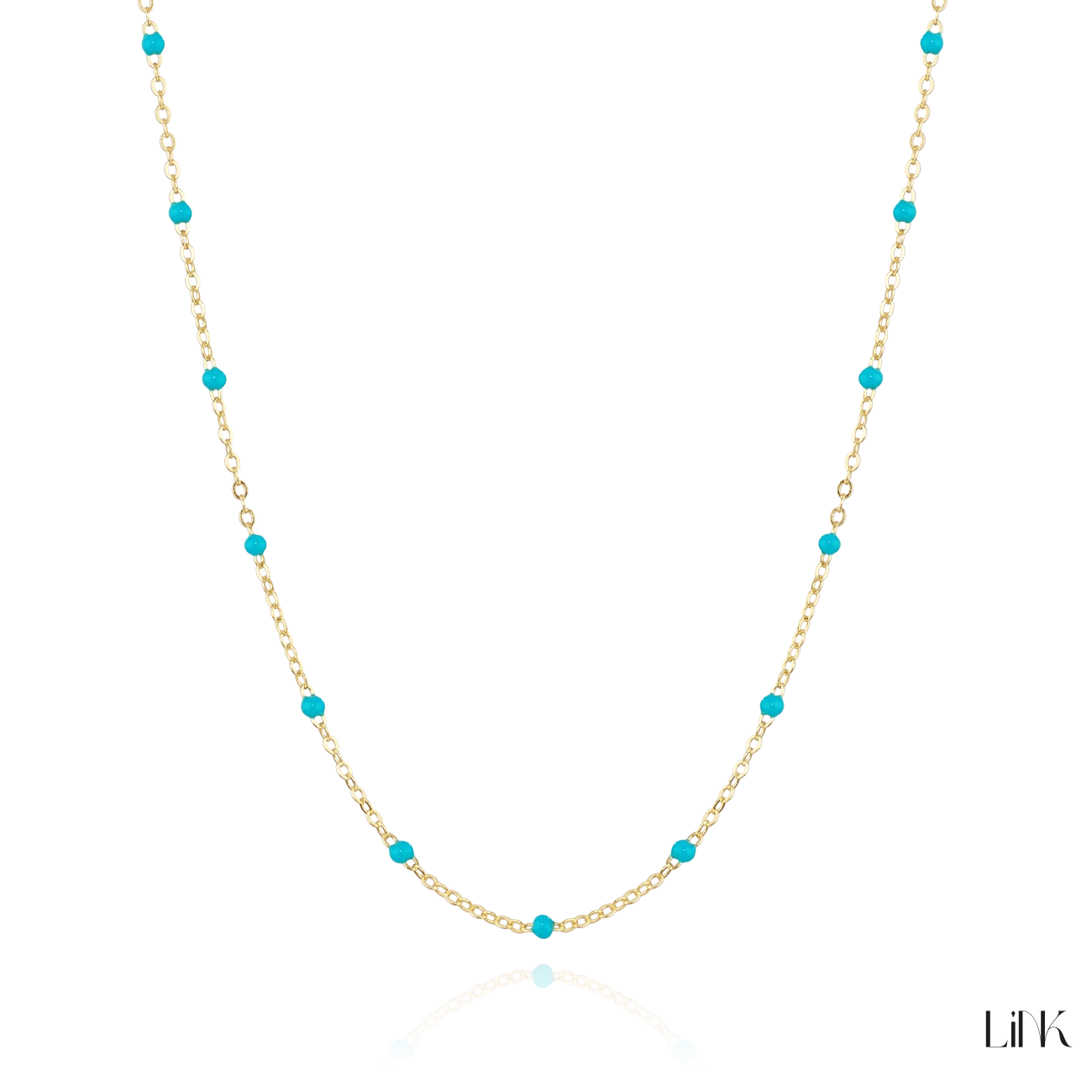 Um toque de frescura e estilo: fio Link em prata de Lei 925 com apontamentos turquesa, ideal para quem valoriza qualidade e design nacional.